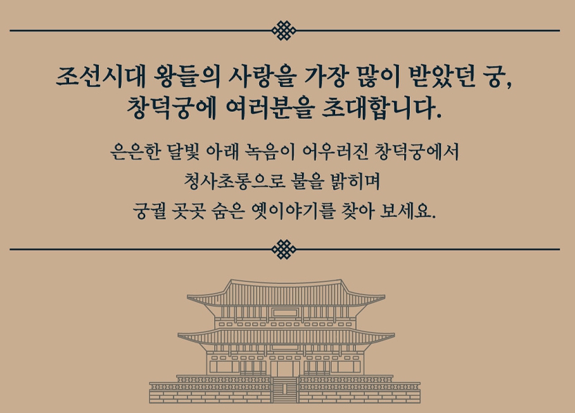 날씨가 선선해지는 계절 가을에 창덕궁 달빛기행이 시작됩니다. 다른 야간개장과 다르게 예매권 응모로 진행되는데요. 예매권 응모 기간이 끝나도 일반 예매를 통해 입장이 가능합니다.
